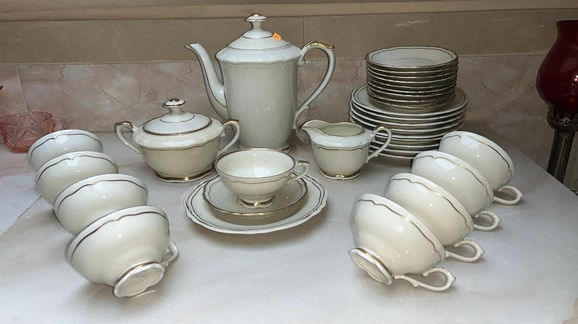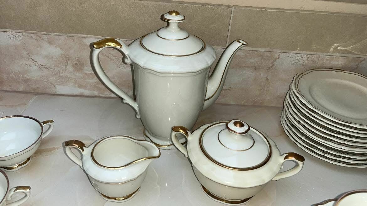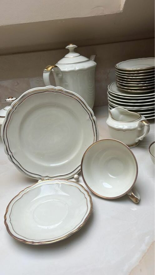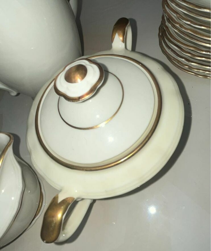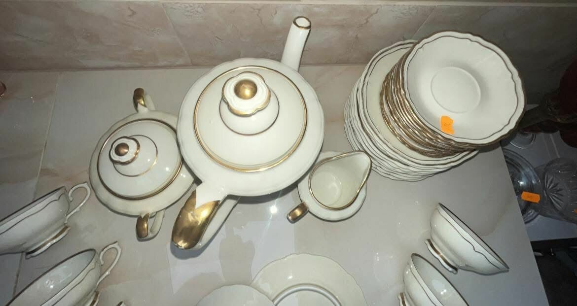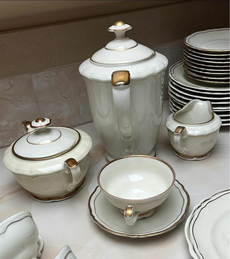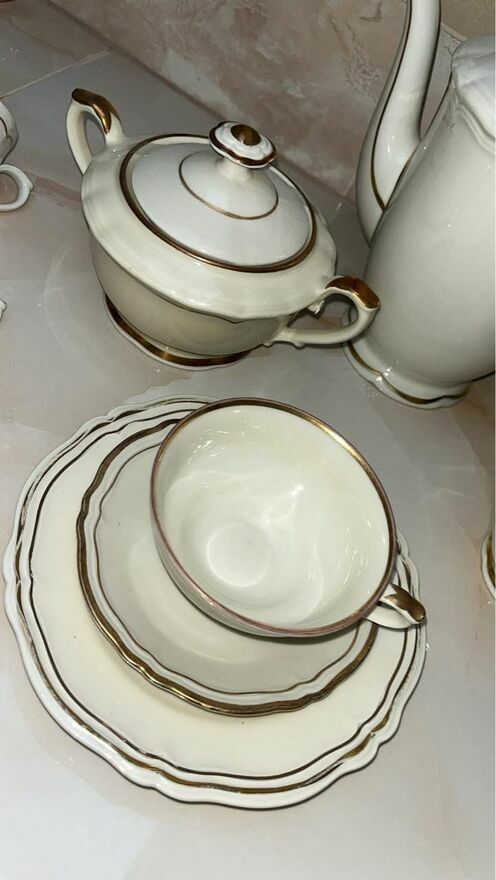 Serwis na 9 osób. Hackefors. Ręcznie malowany złotem