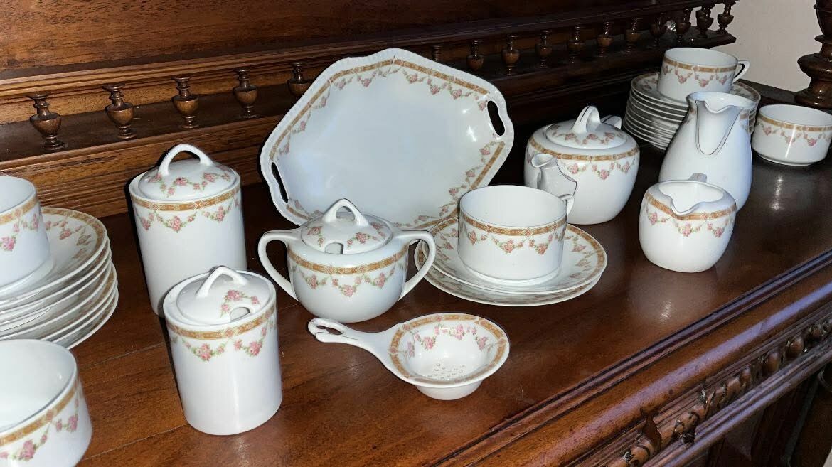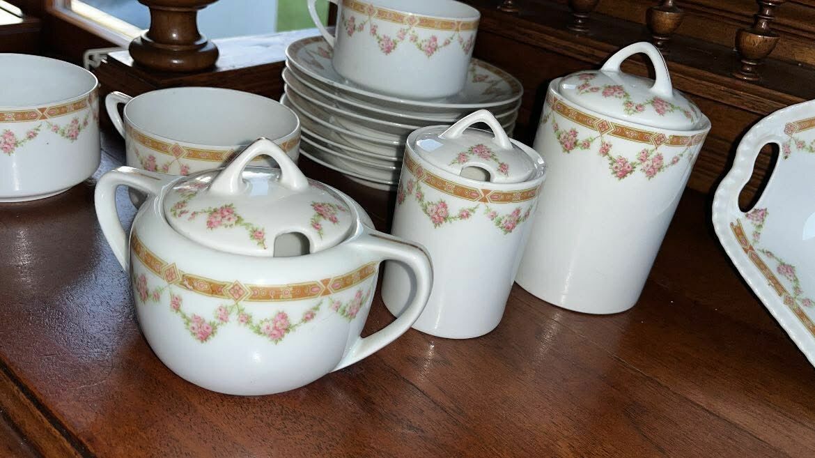 Bardzo rozbudowany serwis- mleczniki, pojemniczki na słodycze, miód.
