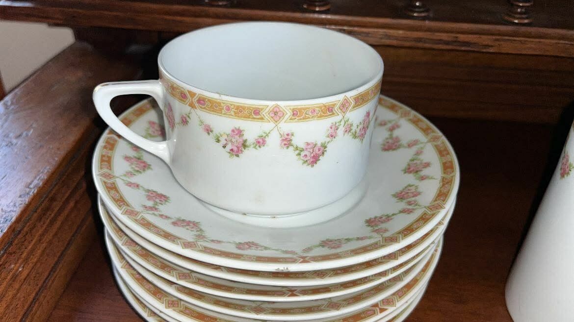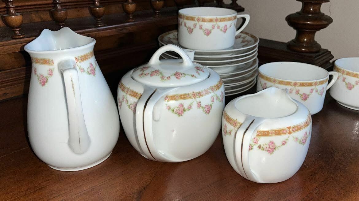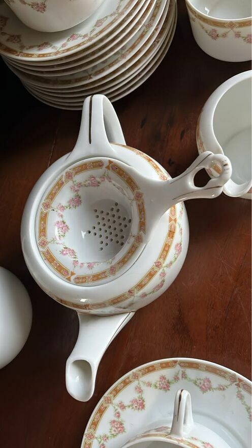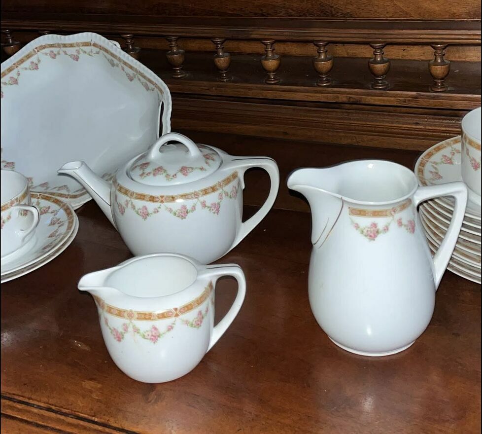 W świetnym stanie - tylko dzióbek dzbanka do herbaty był szlifowany. Miał ukruszenia.