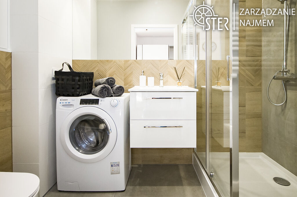 piekarnik, okap. W łazience prysznic, pralka. W salonie rozkładana