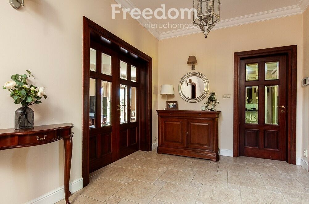 Parter: reprezentacyjne foyer z szerokimi, dwuskrzydłowymi drzwiami,