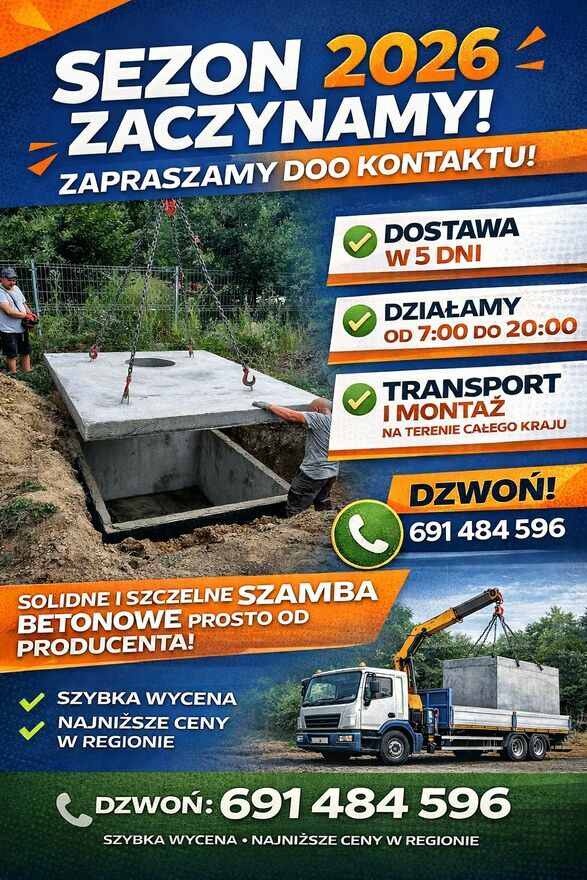 Jeśli potrzebujesz szamba betonowego z szybką dostawą i profesjonalnym montażem — jesteś w dobrym miejscu!Dostawa w 5 dni