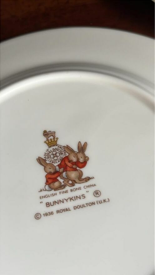 Talerzyk z króliczkami. Bunnykins.1936 Royal Doulton. Made in England.
