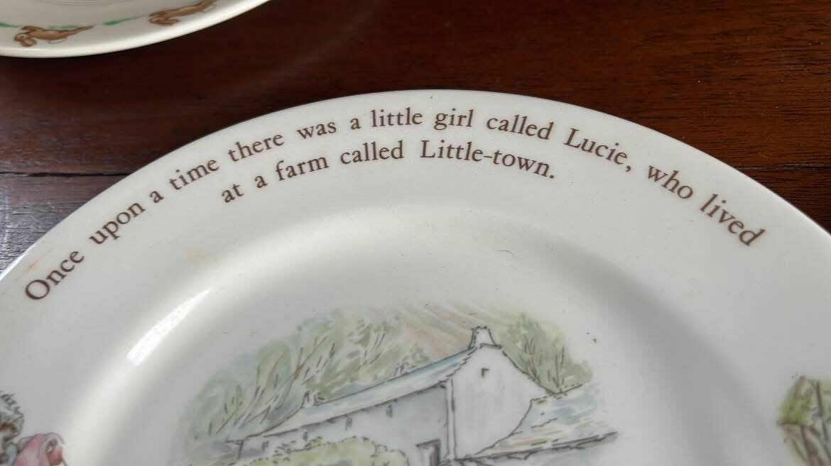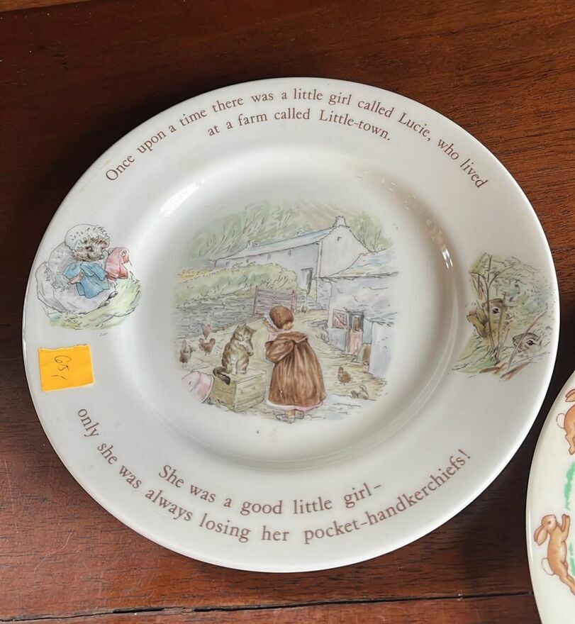 Talerzyki z bajkami Mrs Twiggy- Winkle. Wedgwood. Made in England.Kolekcja dziecięca Beatrix Potter Designs.