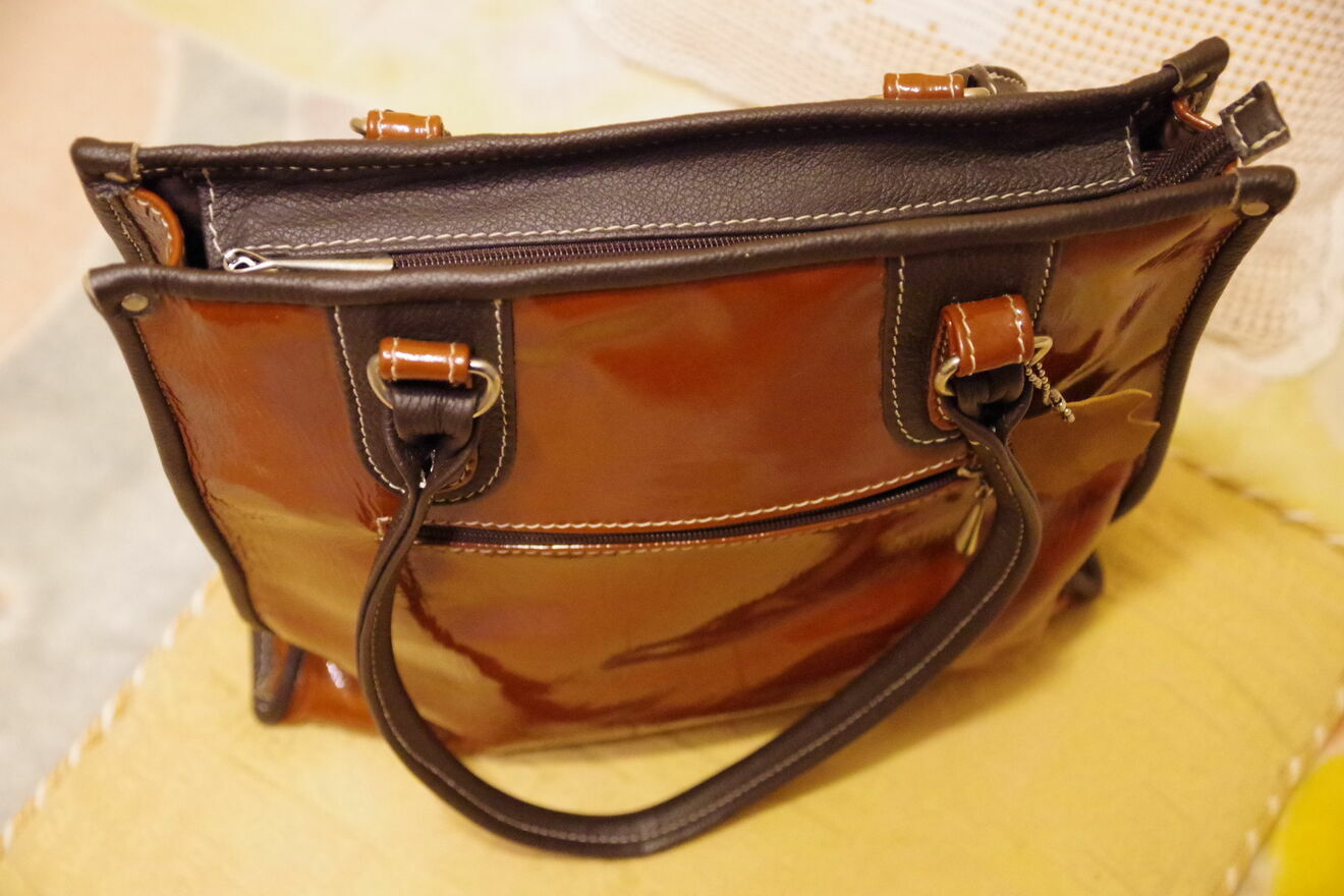 Nowa brązowa torebka z lakierowanej skóry firmy Novita Elbląg. Doskonała jako dodatek do każdej stylizacji. Starannie wykonana z wysokiej jakości materiałów, idealna na wiele okazji.Helena