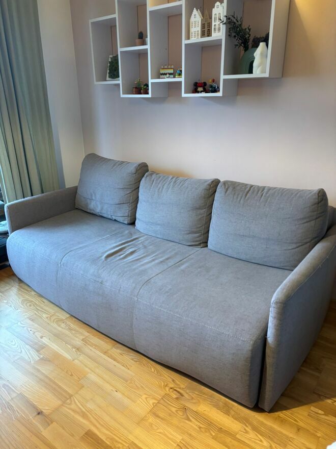 Używana kanapa rozkładana z Black Red White, głęboka, wygodna, szara, podrapana w miejscach jak na zdjęciach. Niedawno temu prana cała profesjonalnie. Ma duży kufer pod całą kanapą. Do odbioru własnego Gdańsk OsowaAnia