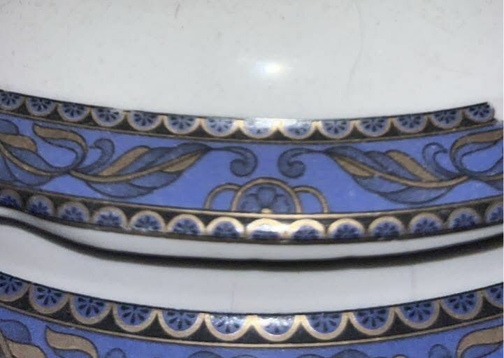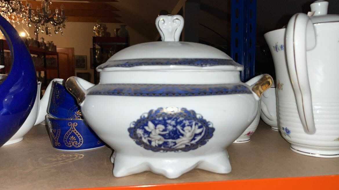 Waza na stopach. Z aniołkami.Granatowy dekor, ze złoconeniami.