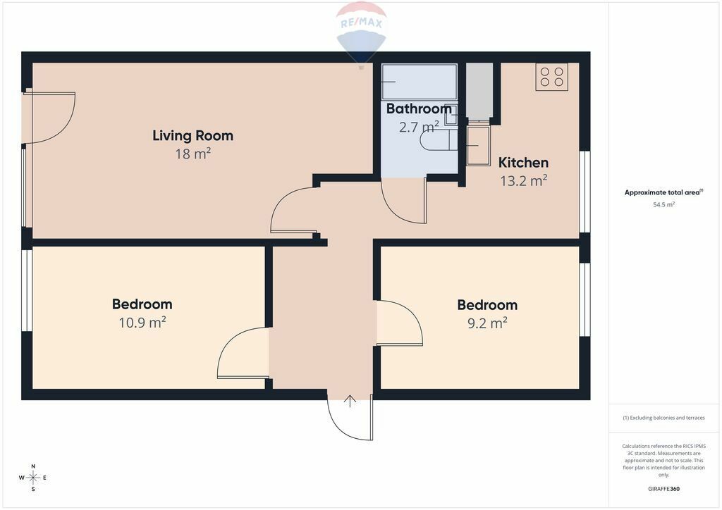 powierzchni 54 m²,