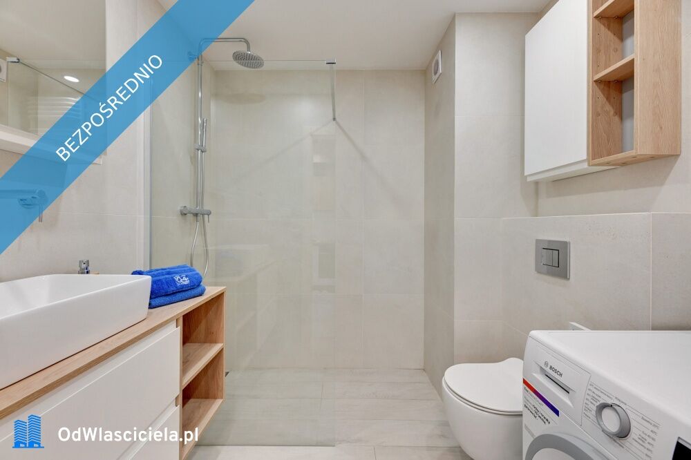 Apartament do wynajęcia znajduje się jednej z najnowszych i najciekawszych inwestycji w Gdańsku - Nadmotławie. Apartament składa się z salonu połączonego z kuchnią i oddzielonej ścianką części sypialnianej oraz dużej łazienki. W części sypialnianej znajduje się dwuosobowa kanapa oraz funkcjonalna szafa z przesuwanymi drzwiami. Łazienka z w.c. wyposażona jest w duży prysznic, pralkę, nowoczesną umywalkę i pojemne szafki. Część kuchenna w pełni wyposażona w sprzęt AGD (lodówka, zmywarka, płyta kuchenna, piekarnik, czajnik i dużo szafek)oraz pełny komplet zastawy stołowej (sztućce, talerze, garnki, kubki, szklanki, deski itp.). Mieszkanie dodatkowo wyposażone w deskę do prasowania, żelazko, suszarkę na ubrania i odkurzacz. W salonie znajduje się sofa (dwuosobowa)z funkcją spania. Telewizor Samsung 55 cali. Telewizja kablowa i Internet światłowód WIFI. Na każde łóżko jest komplet pościeli. Na balkonie znajdują się krzesełka i stolik.